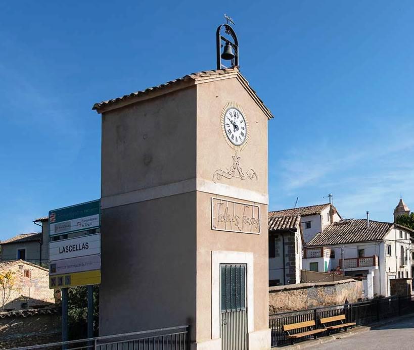 Lascellas es conocida por su fábrica de relojes de torre, que tradicionalmente han venido marcando el ritmo de la vida en muchos pueblos del Somontano y recientemente se ha incorporado a la lista de poblaciones que acogen prestigiosas Bodegas Denominación de Origen Somontano.